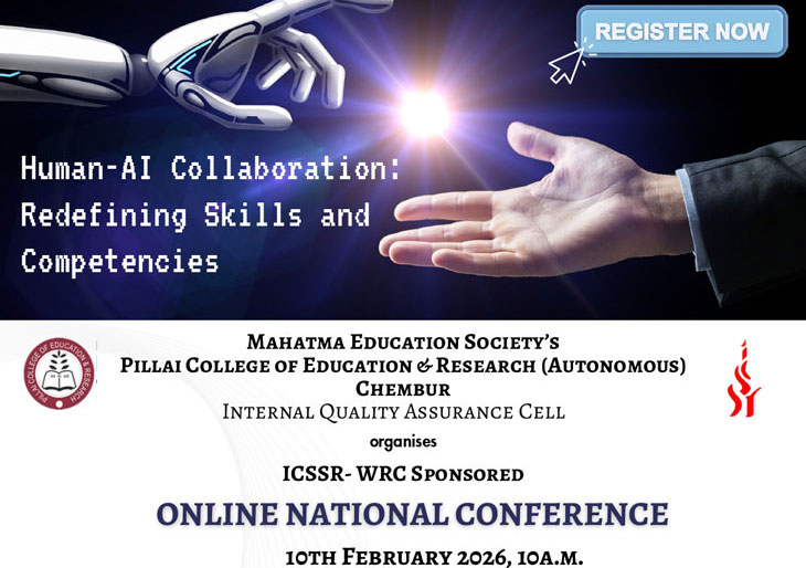 Pillai College of Education and Research, managed by Mahatma Education Society was established in the year 1990 with the sole objective of producing teachers with noble and elevating quality, who in turn, will achieve extra-ordinary merits and attainments. PCER, prestigious institution is an agent for dissemination of knowledge and culture and is an epitome of hopes and aspiration for numerous budding teachers.