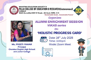 On 16th July 2025, MES’s Pillai College of Education and Research organized an insightful session under the Alumni Learning QEST series on the Holistic Progress Card (HPC). The session was conducted by PCER Alumna, Ms. Preeti Pawar, Head Mistress, Chembur English High School and Junior College. It aimed to provide a clear understanding of the...