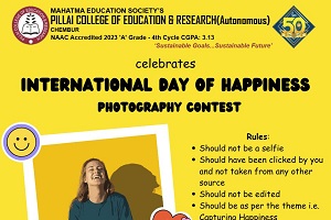Photos have a magical way of freezing emotions and feelings, allowing us to relive happy moments years after they’ve passed. To celebrate International Day of Happiness, PCER Chembur organized a photography contest, inviting students to share their most cherished moments of joy. Winners were: Ms. Nishika Thapar (S.Y. B.Ed.) – For sharing the essence of...Read More