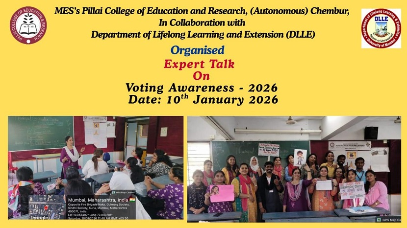 MES’s Pillai College of Education and Research (Autonomous), Chembur, in collaboration with the Department of Lifelong Learning and Extension (DLLE), organized an Expert Talk on Voting Awareness on 10th January 2026.