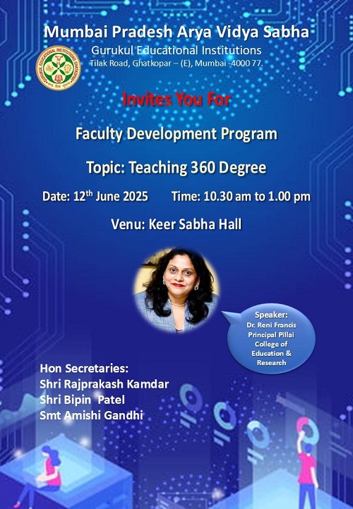 Successfully completed a Five days Faculty Development Programme on Nai- Talim organized by Thane Sub-campus, University of Mumbai and MGNCER(MHRD), Hyderabad.