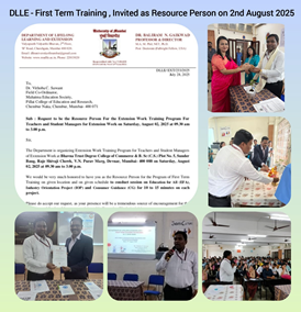 Dr. Vithoba Sawant was invited as a resource person for the Department of Lifelong Learning and Extension (DLLE) First Term Training Programme at Bhavana Trust College on 2nd August, 2025.