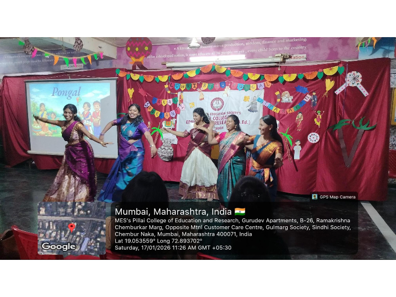 MES’s Pillai College of Education and Research celebrated Harvest Day on 17th January 2026 in the multipurpose hall, highlighting the theme “Unity in Diversity” through five major harvest festivals of India. The programme included a special assembly, SDG awareness, cultural dances, and engaging activities that promoted gratitude towards food and farmers. The event was lively, well-coordinated, and enriched students with cultural learning and interaction. It concluded with the Principal’s inspiring address, reinforcing values of sustainability, respect, and holistic development.