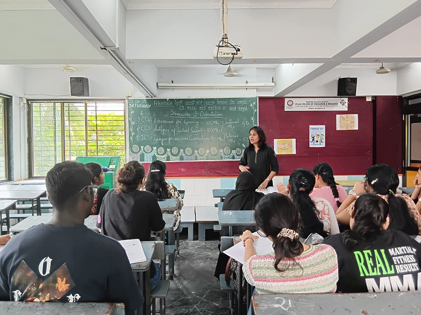 The Semester III Orientation was conducted on 2nd August, 2025 to introduce students to the new academic session. Dr. Jaya Cherian explained the theory courses of Semester III and guided students on the distribution of internal marks through assignments, class tests, and essay tests, as well as the pattern of final examination. She also briefed them about the internship program and the importance of co-curricular activities. The orientation helped students understand their responsibilities and motivated them to begin the semester with confidence and consistency.