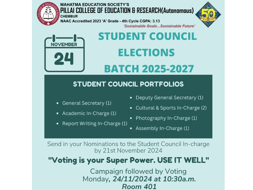 The Students’ Council of PCER Chembur’s 2023-25 batch was elected student Council by voting system.